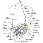 Play sailing game to learn how laylines work, or put it together game to learn optimist parts names.